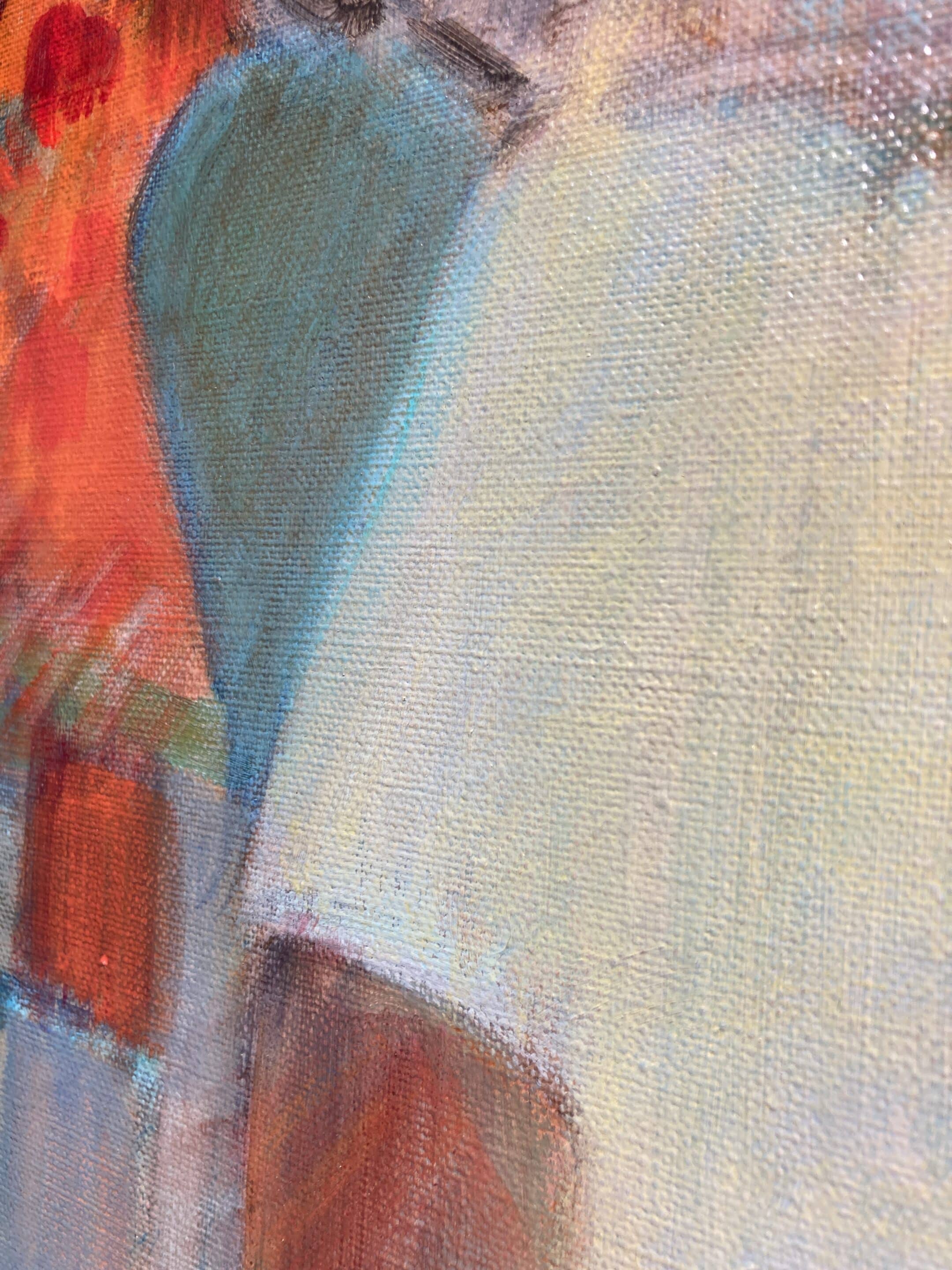 Acrylique sur toile de lin "L'heure des bavardages" de Lydie Delaigue.