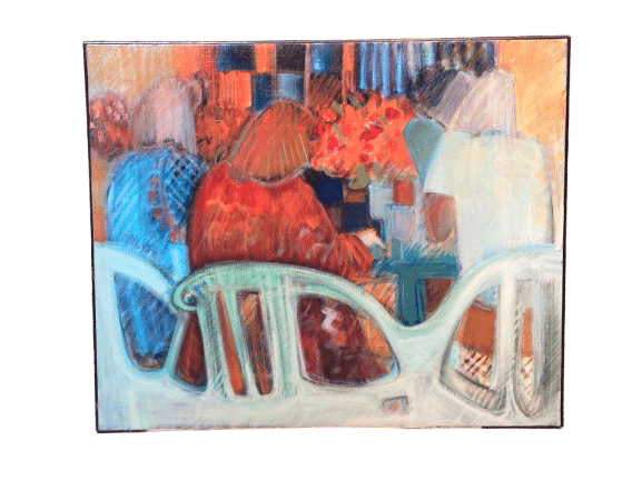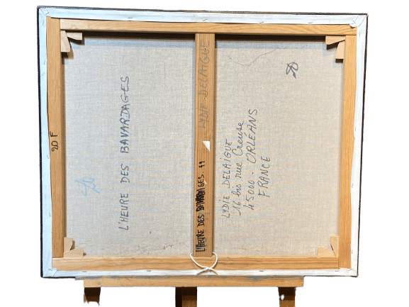 Acrylique sur toile de lin “L’heure des bavardages” de Lydie Delaigue
