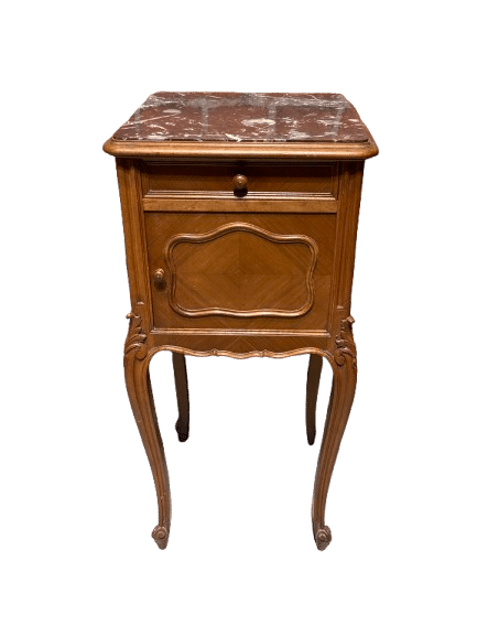 Chevet style Louis XV composé d'un tiroir et d'une porte surmonté d'un plateau en marbre.