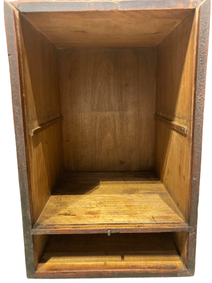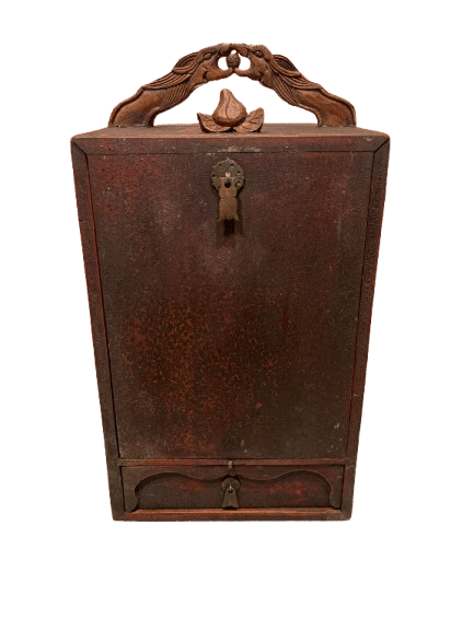 Coffre chinois 19ème en bois avec porte coulissante et tiroir.
