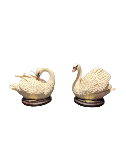 Lot de deux sculptures représentant des cygnes signées Guiseppe Armani