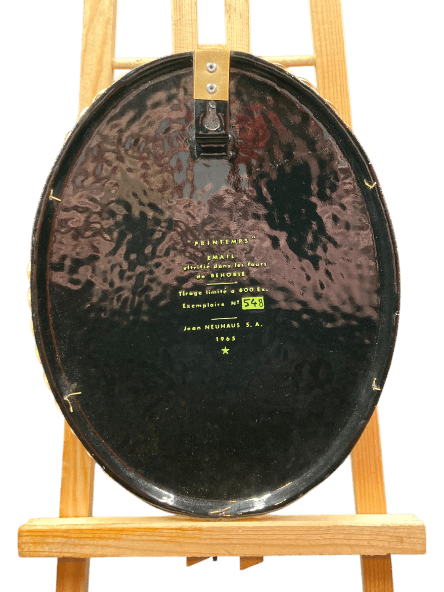 Peinture sur métal intitulée “printemps” signée Jean Neuhaus S.A