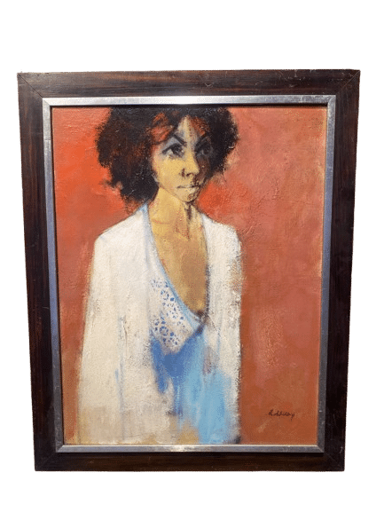 Portrait d'une femme peint sur toile signé R.Leroy.