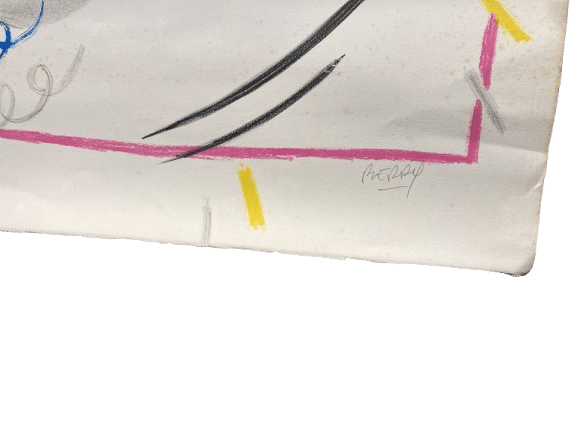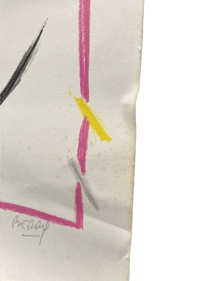 Technique mixte abstraite sur papier, signée Berry